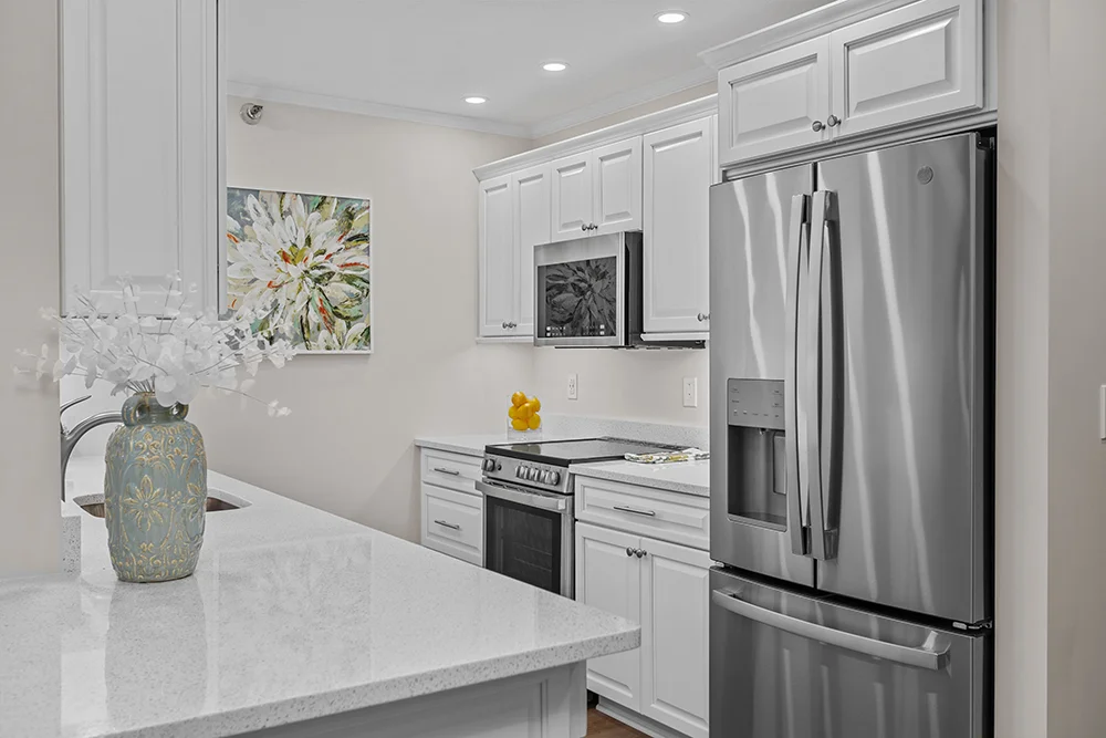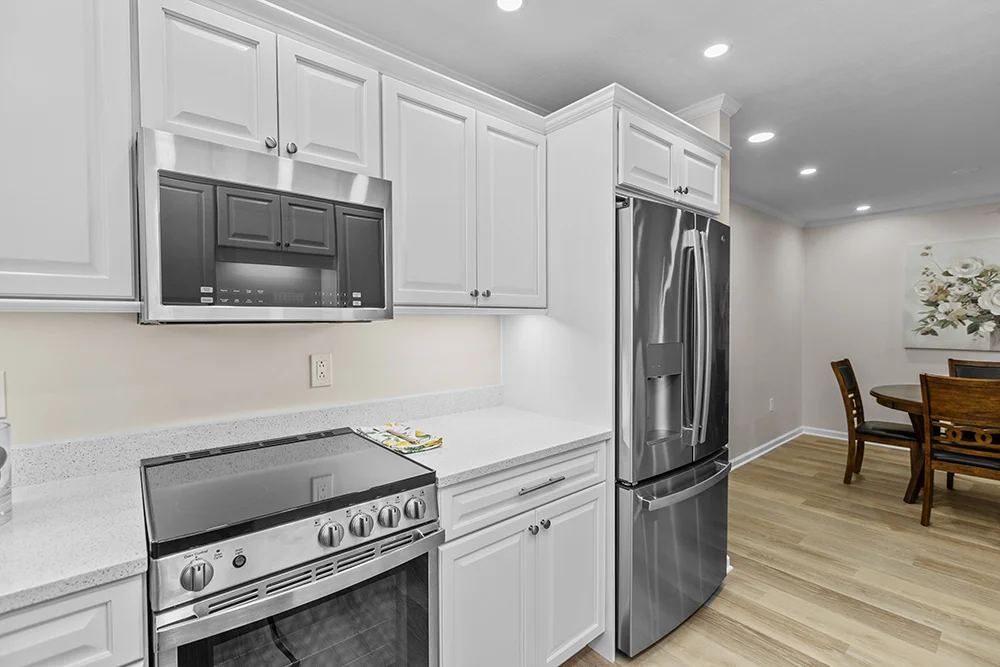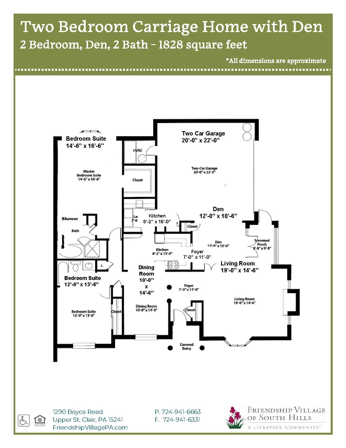 Enjoy the splendor of this grand 1,828 square foot carriage home. The centralized modern kitchen is surrounded by a den, living room and dining room. Both bedroom suites are accompanied by their own full bathroom and closet space. A screened porch and two-car garage combine to make this the perfect home.