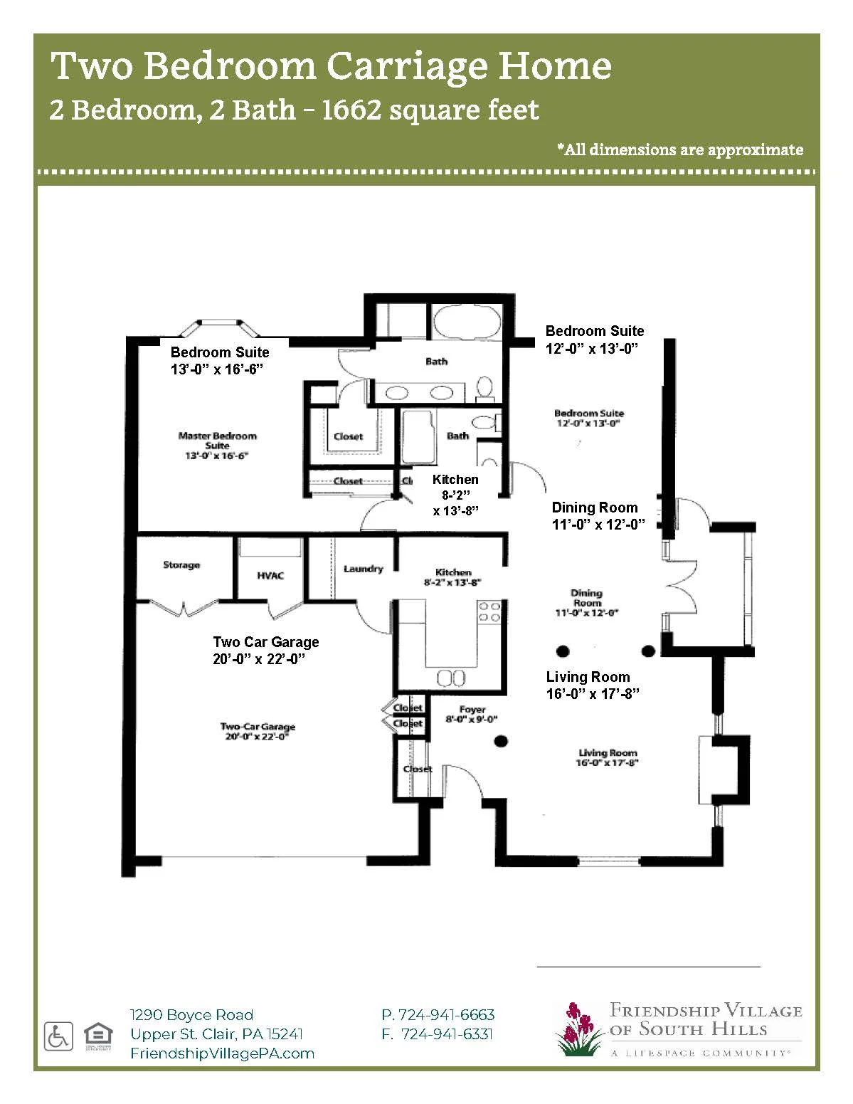 This 1,662 square foot carriage home is designed with sophistication, style and comfort in mind. Spacious living and dining rooms next to a perfectly-sized kitchen provide for excellent entertaining for guests. Two bedroom suites with closets, well-appointed bathrooms, storage, laundry room and a two-car garage make this carriage home complete.