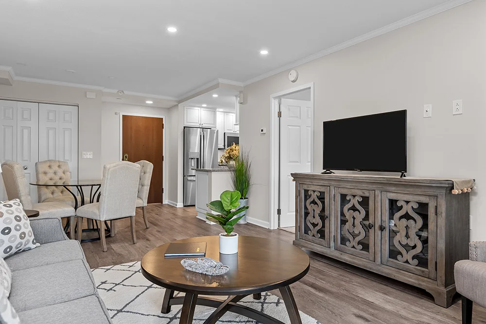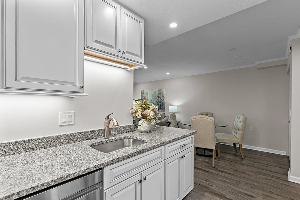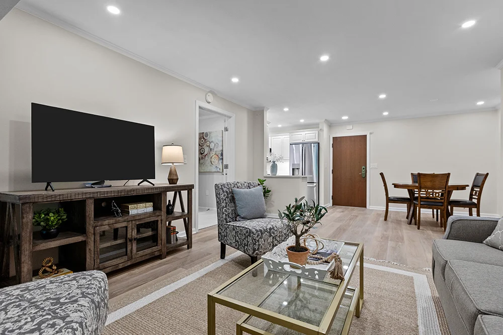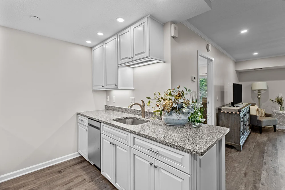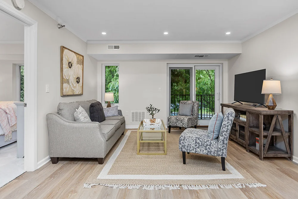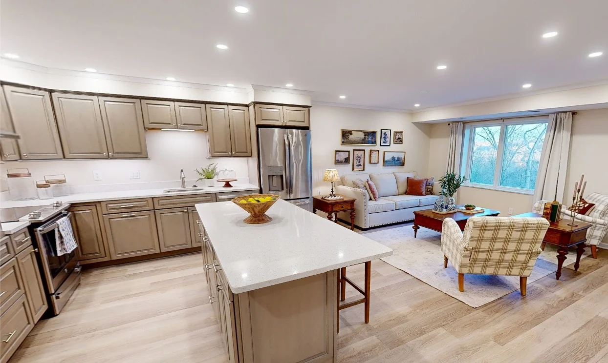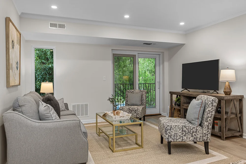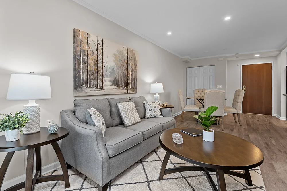 The Laurel offers 1,324 square feet of thoughtfully designed space, featuring one bedroom, one bathroom, and a spacious den perfect for work or relaxation. An open layout connects the living area and kitchen, creating a bright, airy environment ideal for comfortable everyday living.