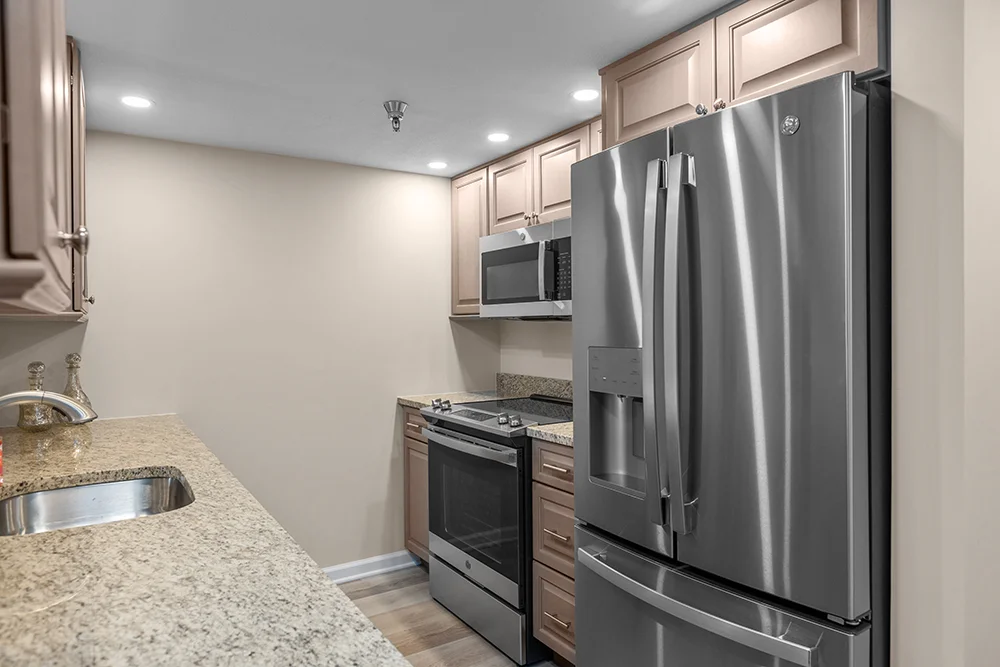 The Two Bedroom Classic has it all. Large open kitchen, dining and living areas with a sun-filled bay window seating space. Two bedrooms with two full baths and a patio off the main bedroom make this apartment a must-see.